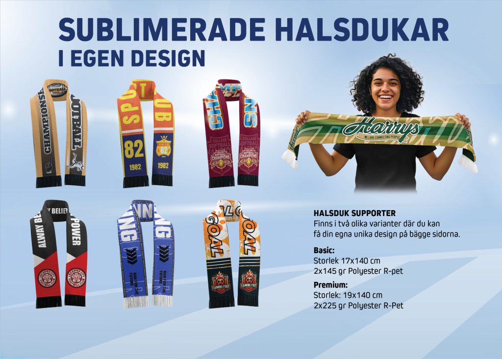 Nu lanserar vi våra nya supporterhalsdukar i egen design, perfekta för föreningar, klubbar, företag och event.