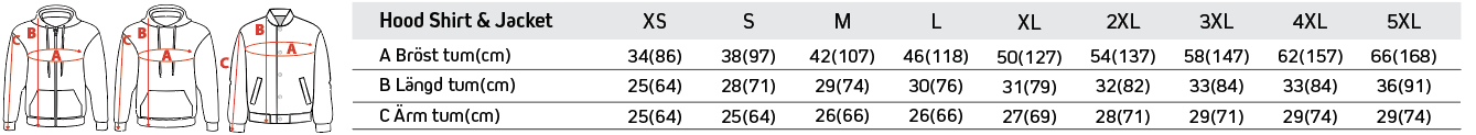 Storlekar: Herr XS-5XL - Dam XS-2XL